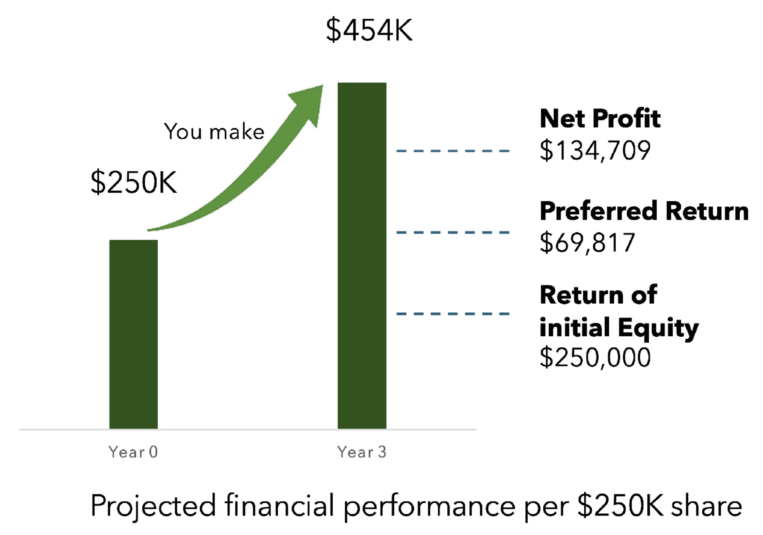Each $250K share will return an estimated $454K in approximately 3 years